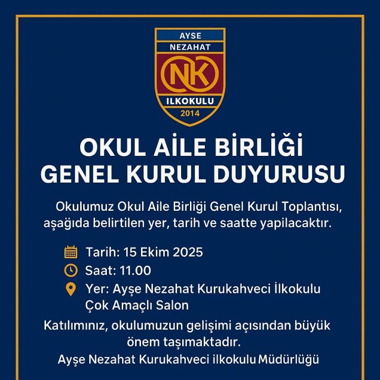 OKUL AİLE BİRLİĞİ GENEL KURUL DUYURUSU